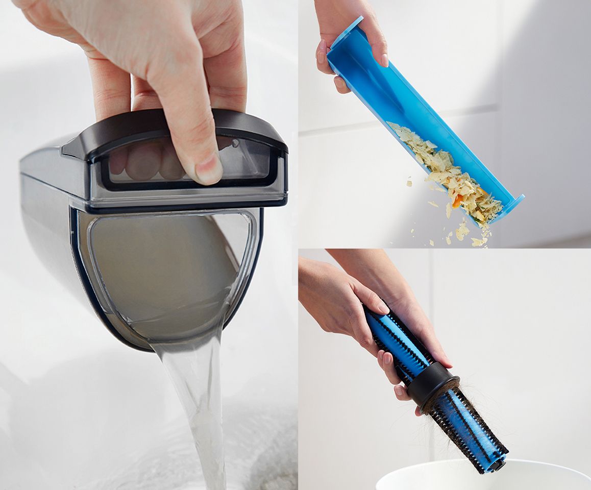HIZERO introduces an innovative solid and liquid waste separation system. HIZERO makes waste disposal super easy by systematically separating the solids into a solid waste container and the liquids into HIZERO’s waste water tank. Hair and pet hair are also picked up and captured by our hair collection roller.